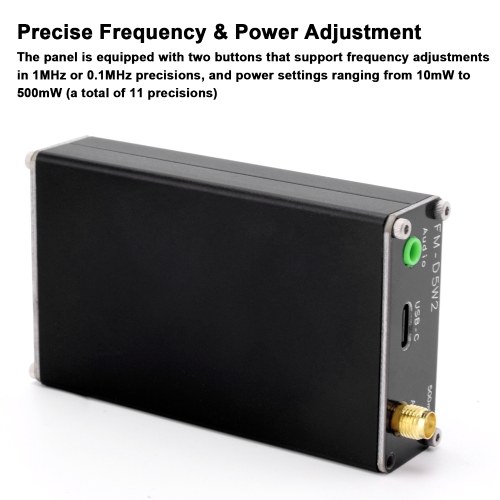 【Precise Frequency & Power Adjustment】: The panel is equipped with two buttons that support frequency adjustments in 1MHz or 0.1MHz precisions, and power settings ranging from 10mW to 500mW (a total of 11 precisions). It also features a memory function that automatically saves your settings for use the nexttime you turn the device on.