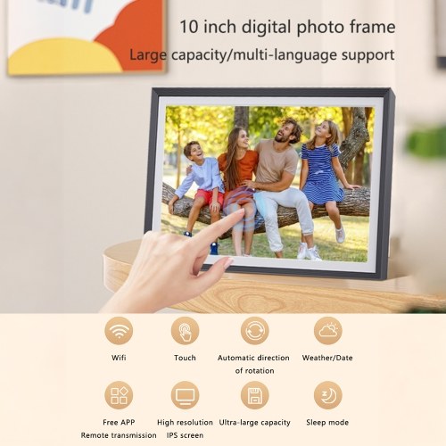 【Intuitive IPS Touch Panel】Boasting a 10.1-inch IPS touch panel with a crisp 1280 * 800 resolution, this photo frame allows for effortless navigation and control. Simply touch the screen to perform functions such as sliding, hiding, deleting, importing photos, language settings, and more, providing a user-friendly and convenient experience.