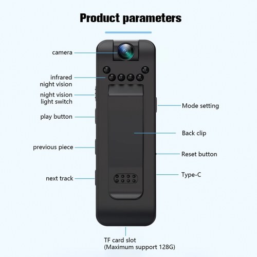【Expandable Memory】The body worn camera supports circular recording and can accommodate a TF memory card (up to 128GB, not included) for expanded storage capacity. Say goodbye to worries about running out of memory space and capture more moments with ease.