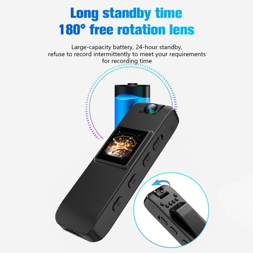 【Body Camera with Audio & Video】Equipped with a 180° rotatable lens, this body camera captures crystal-clear 1080P videos, making it ideal for a wide range of activities such as law enforcement, delivery jobs, traveling, camping, and cycling.