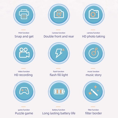 Ideal Gift: This camera printer not only captures precious moments but also fosters creativity and imagination. It's the perfect gift for aspiring photographers, offering a fun, interactive way to explore the world of photography. Encourage your child's creativity with this multifunctional, user-friendly camera.