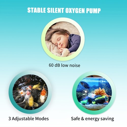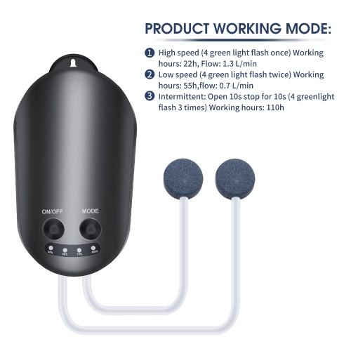 [Evenly Air Distribution]There are 3 working modes that can meet your different demands, and two air stones make the air distribution more even and pervasive.