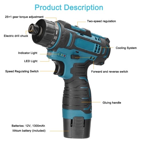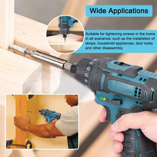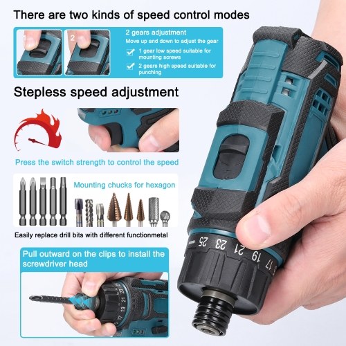 The 12 V electric screwdriver can quickly tighten or loosen screws, providing enough power to complete most household or industrial applications. The use of a brush motor, with large torque and adjustable speed, quick-starts, timely braking, relatively simple control the circuit and so on. There are two kinds of speed control modes, 2 gears adjustment and stepless speed adjustment for you get the speed you want. Torque adjustable design, easy torque adjustment, stable torque output. Using an electric screwdriver can increase efficiency and reduce the fatigue and time costs of manual operation for different types of screws. Suitable for tightening screws in the home in all scenarios: such as the installation of lamps, household appliances, door locks and other disassembly.