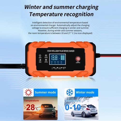 Intelligent Digital Display & Temperature Detection: Our battery charger boasts an intelligent digital display for clear, easy-to-read charging status. It also features an intelligent temperature detection system that automatically adjusts the charging voltage, ensuring sufficient charging in both cold and hot seasons.