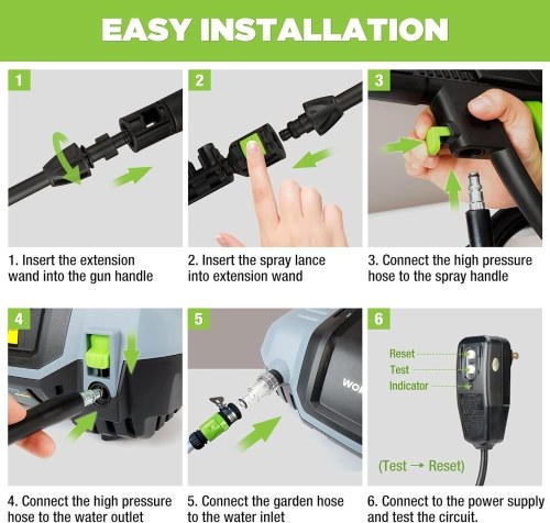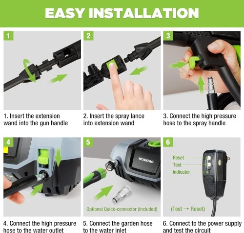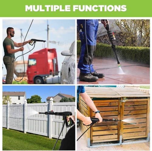 High-Pressure Cleaner: The powerful 1200-watt universal motor can generate a maximum of 1300 PSI and 1.8 GPM of water flow, providing maximum cleaning power for quickly and easily removing dirt and grime. It is perfect for cleaning vehicles, yards, decks, roof moss, brick buildings, BBQ grills, farms, lawn mowers and other outdoor equipment.