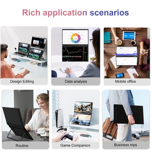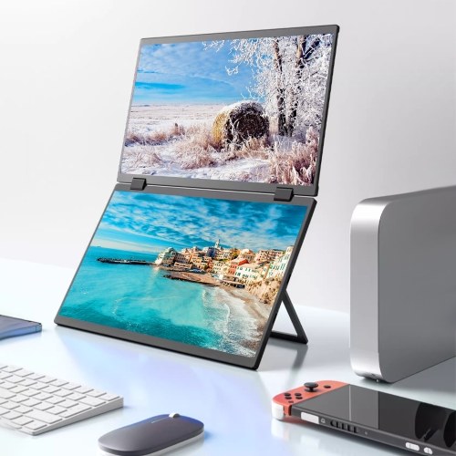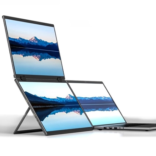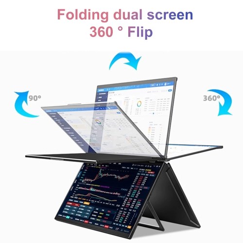 Dual 15.6-inch Foldable Screens: This innovative display features two 15.6-inch screens that can be folded and flipped at any angle, providing you with the flexibility to adjust your viewing setup according to your needs. This dual-screen design laptop monitor offers endless possibilities for multitasking.