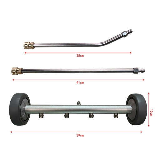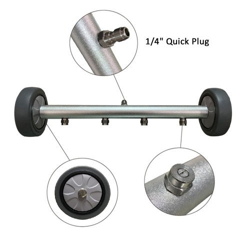 Four Stainless Steel Nozzles: The pressure washer undercarriage cleaner features four 65° fan-shaped stainless steel nozzles. These nozzles provide a wide cleaning area, significantly improving the cleaning efficiency.
