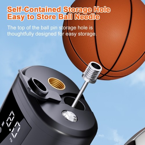 Ball Pump with Needle: This electric ball pump comes with built-in needle storage, eliminating the hassle of carrying extra accessories. Easily inflate sports balls anywhere, anytime.