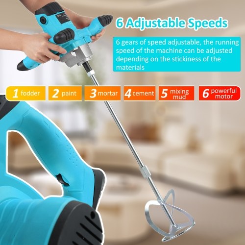 【6-Speed Regulation】Easy to adjust speed, suitable for for mixing even heavy materials quickly and thoroughly, especially for the difficult mixing materials.