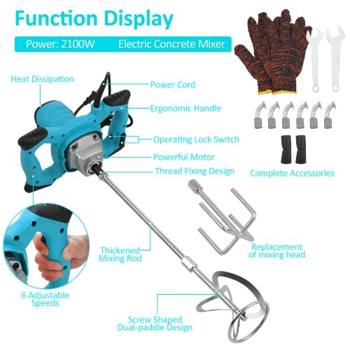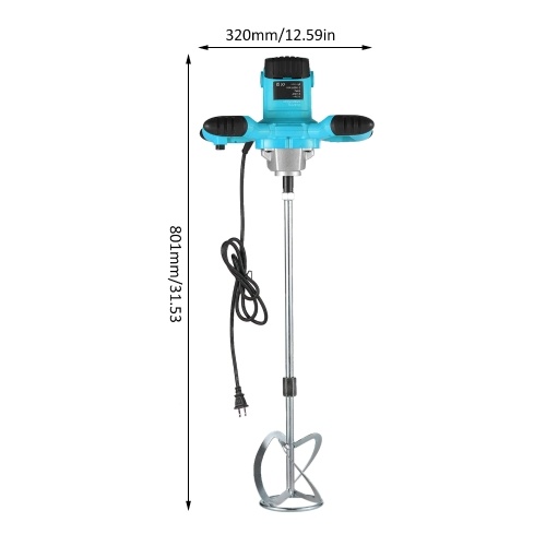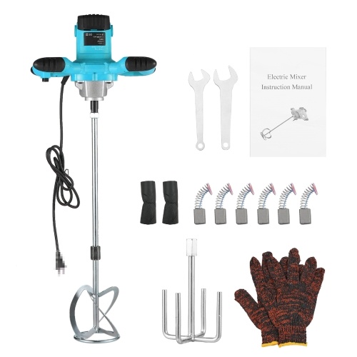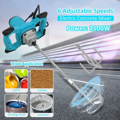This electric mixer features 6 gears of adjustable speed, with rapid cooling design and ergonomically designed handle shank. Easy to control and convenient to use, it is a great choice to make your working efficient. The electric power mixer is designed for mixing building materials and chemical materials, for mixing even heavy materials quickly and thoroughly, especially for the difficult mixing materials, such as high density mortar, dried building materials, tow or more kinds mixed materials.