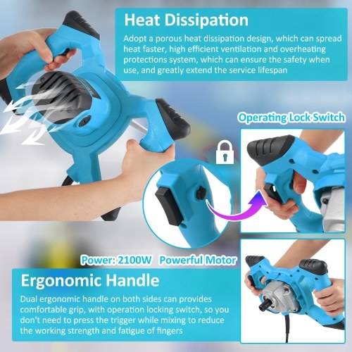 【2100W Powerful Mixer】Strong power mixer for cement, paint, concrete, mud and grout, etc. Heavy duty design, capable of handling both DIY and commercial jobs at ease.