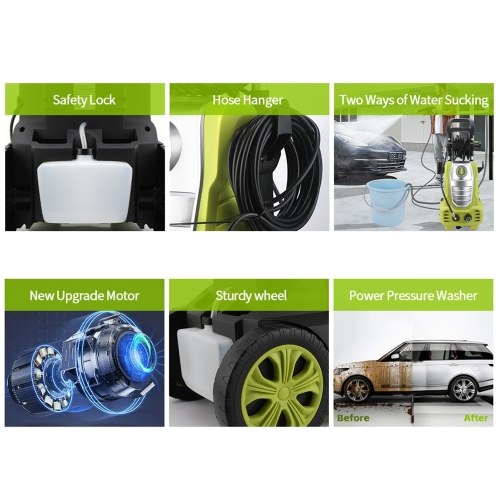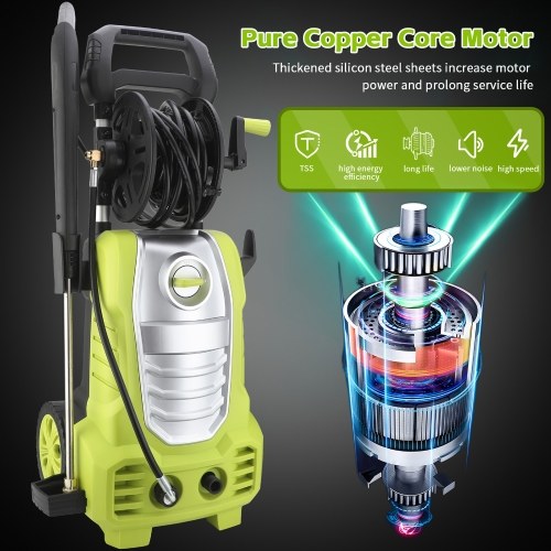 High Pressure Washer Hose Reel: The high-pressure washer is equipped with a 35-foot power cord and a 20-foot high-pressure hose, ensuring freedom of movement without the need to drag the electric pressure washer. This allows you to easily complete cleaning tasks in different locations. The built-in car-mounted hose reel conveniently protects and prevents the high-pressure hose from tangling, providing a unique cleaning experience.