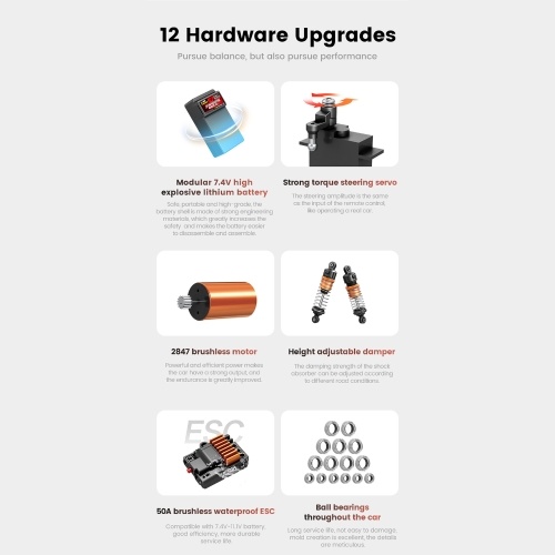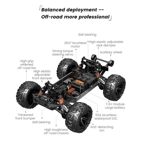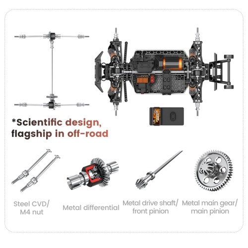 Brushless Motor: Equipped with a powerful and efficient 2847 brushless motor, this remote control car delivers strong output and improved endurance, ensuring a thrilling and long-lasting play experience for kids.
