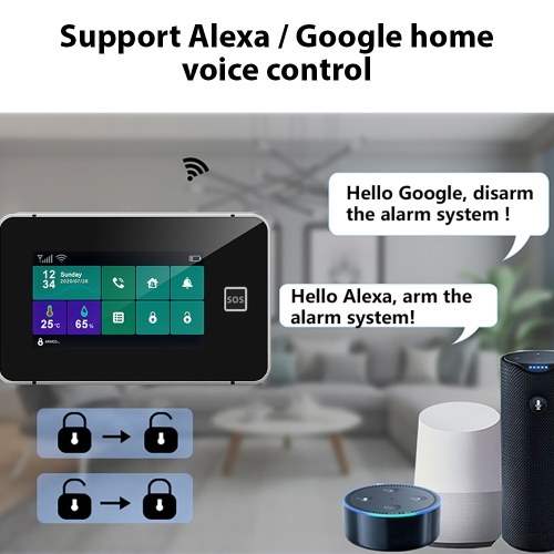 【Dual Network System】: This WIFI alarm kit utilizes a dual network system, combining Wi-Fi 802.11 b/g/n (2.4GHz) and cellular (GSM or 4G), ensuring a reliable and secure connection for your home security system.