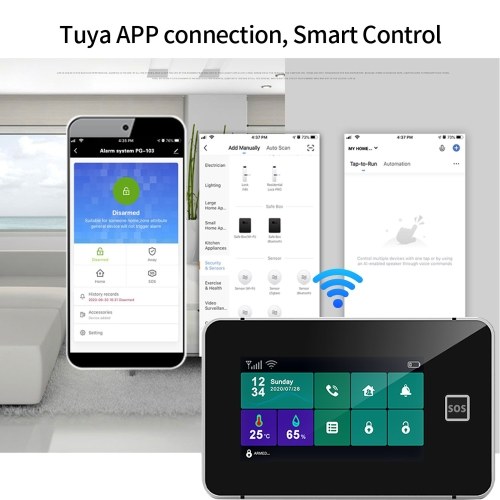 【Multiple Disarming Methods】: The system can be disarmed on-site using your fingerprint, the touch panel, or the provided remote tags. This offers flexibility and convenience in managing your home security.