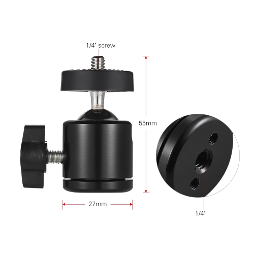 I purchased a nearly identical ballhead about a year ago which had significant flaws. Even with the flaws, it was a bargain at $5. Recently I needed another ballhead, so I purchased this one from Andoer. It is exactly the same design, but much better executed, and with all the flaws fixed. I immediately bought two more---because you never know when a good ballhead will come in handy. DESCRIPTION > Body 1" diameter X 2 1/2" tall > It has a large ball and locks securely, and moves smoothly. > Click on “Stoney” just below the product title to see my other reviews, or leave a comment to ask a question. <ol