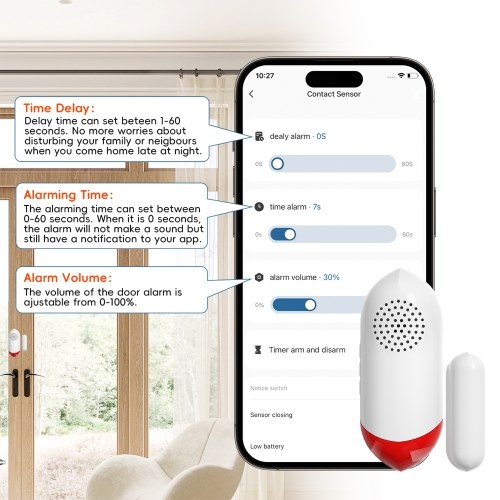 【Intelligent and Convenient】: Our smart door alarm offers advanced features designed to simplify your life. The built-in timer function allows for automatic arming and disarming, eliminating the worry of forgetting to secure your home. Whether you're at work or on vacation, rest assured knowing that our reliable system will keep you informed and protected.