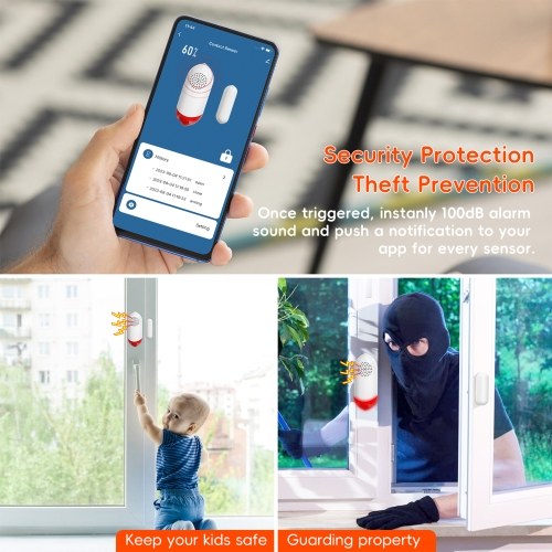【Tuya App】: Stay in complete control of your home security wherever you are. Our intuitive Tuya app enables real-time alerts and alarm notifications on your smartphone, keeping you updated on any detected activity. Additionally, the app's sharing feature allows you to share access and monitor the status of your doors and windows with family members, fostering a sense of safety and peace of mind.