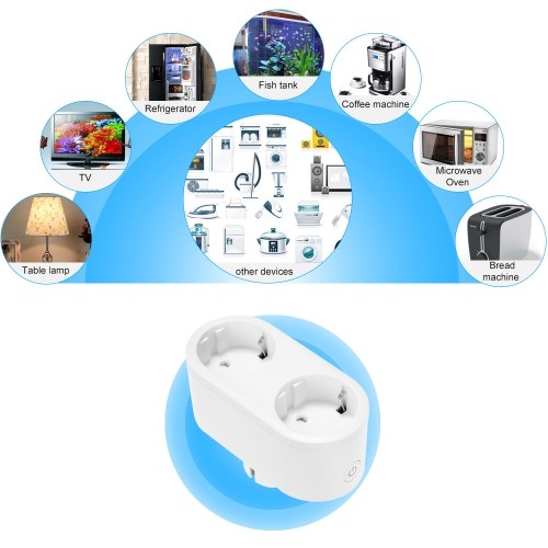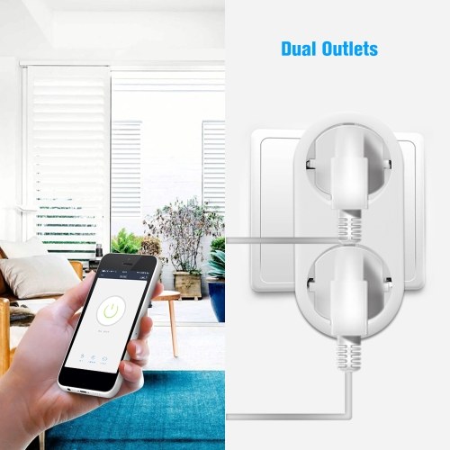 This is WiFi smart plug with dual outlets, which supports timer to switch on and off socket, compatible with Amazon Alexa and for Google Home IFTTT for voice control, device sharing and phone app remote control,installation is easy, safe and fast, you can set timers to turn on/off your electronics by clicking on your smart phone, which makes your home smarter. A super design for you!