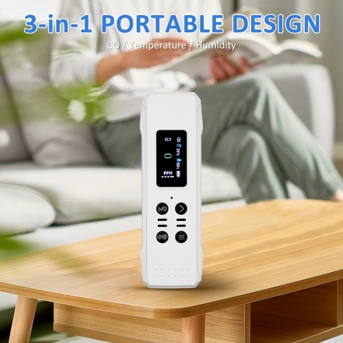 Mini design with hanging lanyard. This 3 in 1 Carbon monixide detector is mini design with dimensions: 4.13 x 1.37 x 0.63 inches. It is so convenient to carry it or hang it to anywhere.
