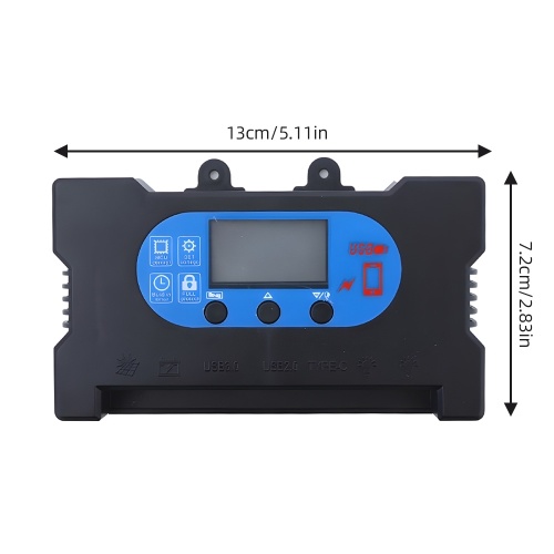 【Multiple Outputs】: This solar panel charge controller offers diverse outputs, including solar panel input, battery input, USB ports, Type-C output, and two lamp outputs. It supports the charging and discharging control of solar panels, making it suitable for various off-grid solar applications.