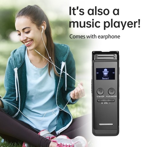 【Long Battery Life】With its built-in lithium battery, this digital voice recorder offers up to 60 hours of recording time (at 512Kbps) and 40 hours of playback time (when using headphones). This ensures you won't miss a moment, even during long recording sessions.