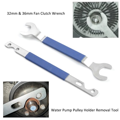 Versatile Tool Kit: The fan clutch removal tool kit consists of a 32mm and 36mm fan clutch wrench, as well as a fan pulley holding tool, aiding in the removal of temperature-dependent viscous fan clutches.