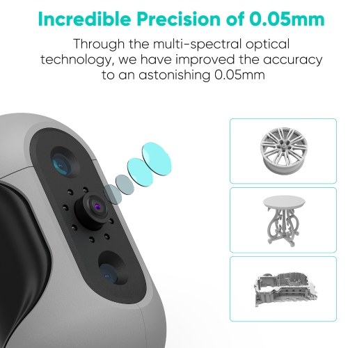 [Capture Even the Smallest Details] Our Mole 3D scanner excels at capturing intricate details with an impressive accuracy of up to 0.05mm. Utilizing invisible near-infrared light sources ensures eye protection and excellent compatibility with various lighting conditions.