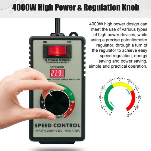 【4000W High Power & Regulation Knob】: 4000W high power design can meet the use of various types of high power devices, while using a precise potentiometer regulator, through a turn of the regulator to achieve easy speed regulation, energy saving and power saving, simple and practical operation.