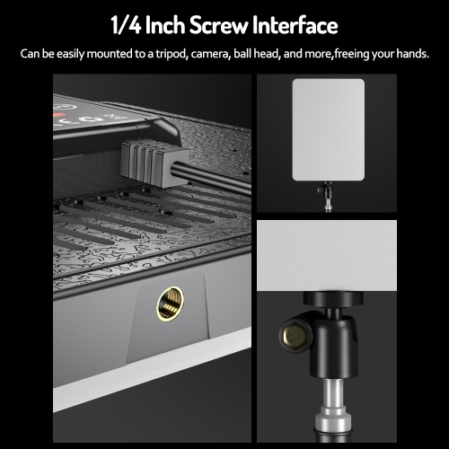 [1/4 Inch Screw Hole & Ball Head] Can be easily mounted to a tripod or light stand horizontally and vertically, freeing your hands for more convenient use; and the ball head offers 360° rotation for free lighting angle adjustment.