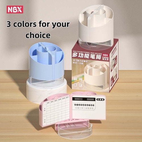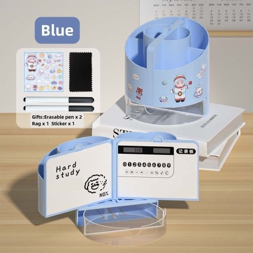 【4-in-1 Multifunctional Design】This pen holder isn't just for storing pens. It's a multifunctional stationery item that features a built-in calculator, an erasable whiteboard, mirror and schedule for added convenience.