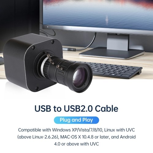 【Wide System Compatibility】This plug-and-play USB camera comes with a 3-meter long USB 2.0 cable for easy setup. It's compatible with Windows XP/Vista/7/8/10, Linux with UVC (above Linux-2.6.26), MAC-OS X 10.4.8 or later, and Android 4.0 or above with UVC.