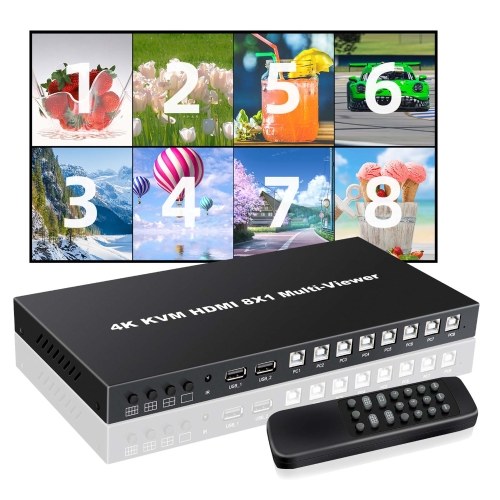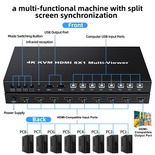 8 In 1 Out Switcher: Allows you to connect 8 HDMI-compatible devices to a single screen (e.g. TV box, DVD player, etc.). No need to insert and unplug high-clear cables to switch devices, suitable for home, office, and other places.