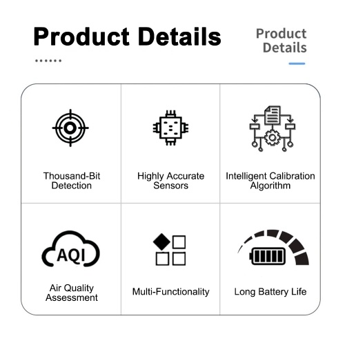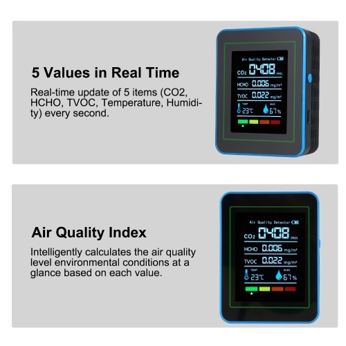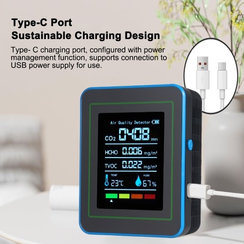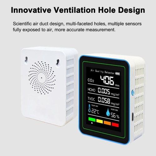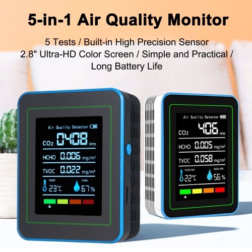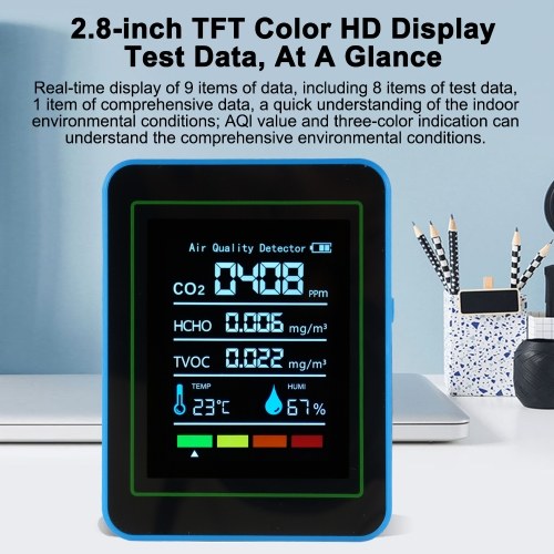 2.8-inch TFT Color screen: Equipped with a 2.8" TFT color digital display screen, it clearly shows real-time air quality readings for easy understanding and tracking of changes.