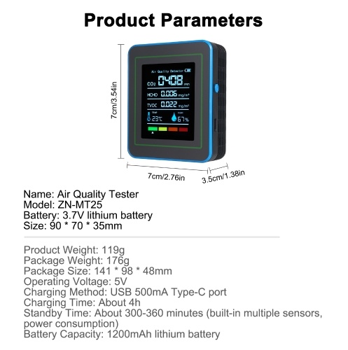 Easy to Use: Our indoor air quality monitor comes with a built-in 1200mAh rechargeable lithium battery and USB charging cable. It lasts 5-6 hours on a single charge and is recommended to be kept charged if you need to monitor your indoor environment for extended periods of time.