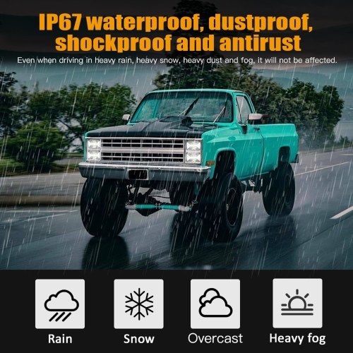 Made of die-casting aluminum housing, shock and vibration resistant, maximum protection for led headlight from minor abrasions and slight scratching. IP67 waterproof rate, no fear of raining or snowing.