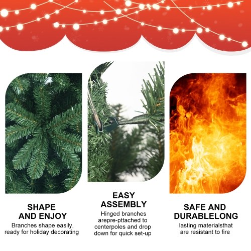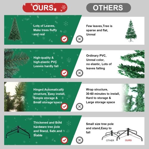 Customizable Design: This artificial Xmas tree comes without lights, allowing you to personalize your decorations according to your preferences. Whether you prefer traditional white lights, colorful ornaments, or a minimalist look, you have the freedom to create your own unique Christmas tree design. Let your creativity shine and make this tree truly yours.