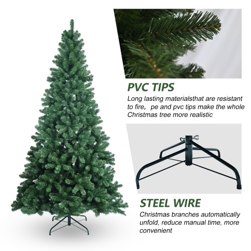 High-quality Material: This Christmas tree is made of environmentally friendly and fire-resistant PVC material, ensuring safety and durability. The steel wire stand base adds durability and stability, making it a perfect choice for decorating your home or garden during the festive season.