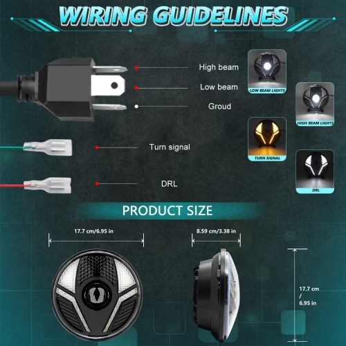 Wide Application: It is not limited to use on motorcycles, but also replacement for Jeep Wrangler JK LJ CJ TJ, and so on. It is compatible with all vehicles with 7-inch round headlights.