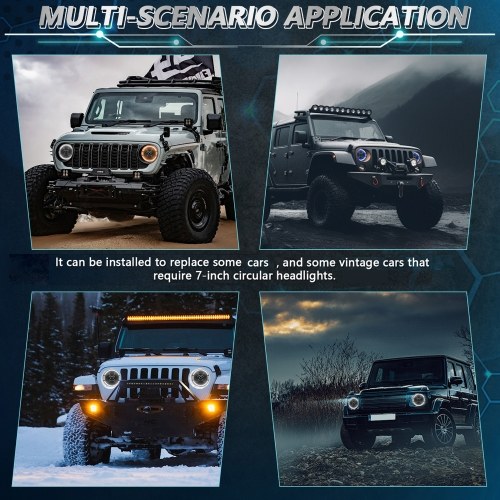 Wide Application: It is not limited to use on motorcycles, but also replacement for Jeep Wrangler JK LJ CJ TJ, and so on. It is compatible with all vehicles with 7-inch round headlights.