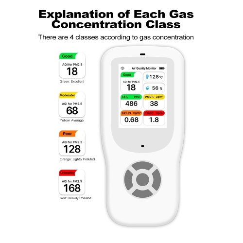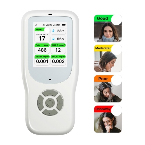 2500mAh Capacity Battery: The air quality monitor incorporates a built-in 2500mAh rechargeable battery with a substantial capacity. Moreover, its portability enables easy relocation within your home or office.