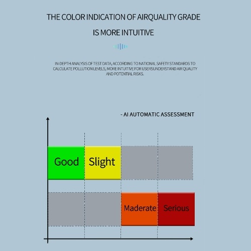 Portable Size: This air quality detecor can be held easily, and it also can be placed on your desk for use.