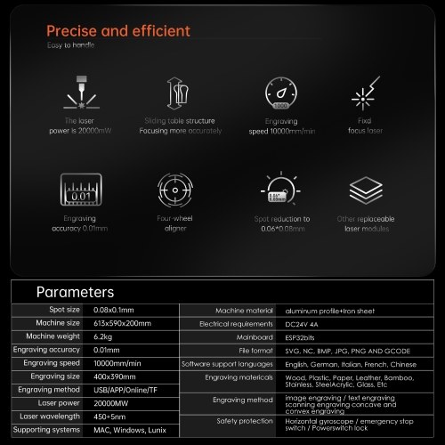 ACMER P1 Pro 20W Laser Engraver is great, nice looking, easy to assemble, 15 minutes to finish. The engraving speed is very fast, and the engraving precision is also very high, which can achieve very fine engraving effect. With good durability and stability, it runs stably for a long time without any problems so far. Overall, a very good laser engraver, highly recommended for anyone who wants to make their own gift creations!