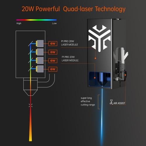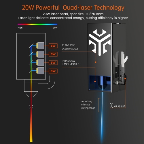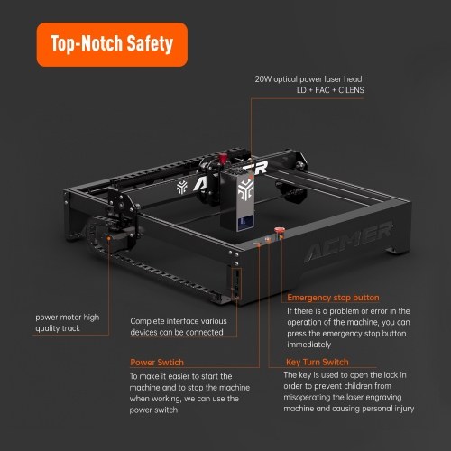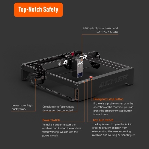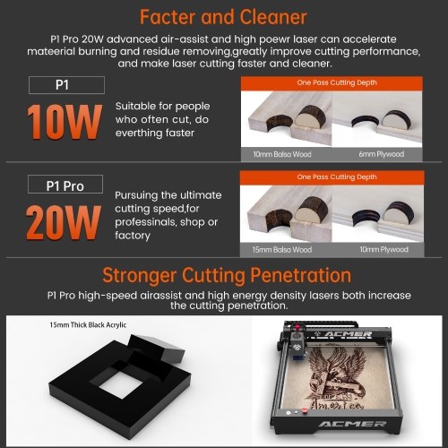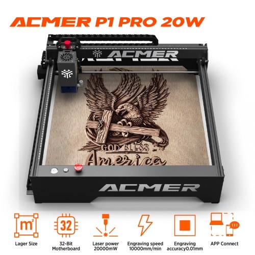 ACMER P1 Pro 20W laser engraving machine has fast engraving speed and supports engraving of various materials, Simple operation, compact design, small footprint, easy handling and storage, it is a good laser equipment.