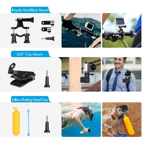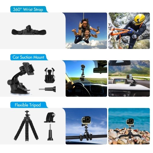 【360° Rotating Wrist Strap + 360° Rotating Clip Mount】Wrist strap for fixing your action camera to your wrist easily, and clip mount to clip your action camera stably to backpack strap, and 360° rotation design allows you to adjust capture angle flexibly.