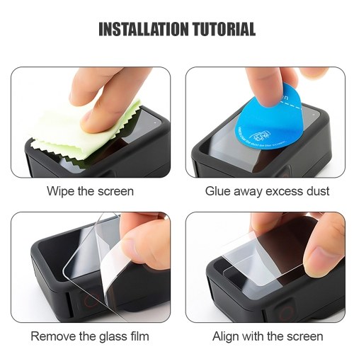 【GoPro Tempered Glass Film】The comprehensive film kit includes a lens film, front protective film, rear protective film, and a handy film tool. Safeguard your GoPro from scratches, dust, and fingerprints.