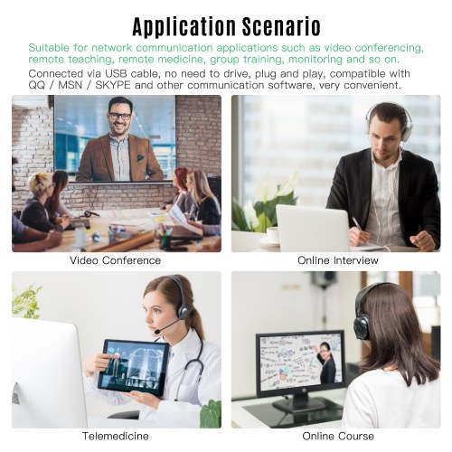 Support a variety of installation methods, you can install it on the ceiling, wall or tripod, can also be placed directly on the desktop to use. Connected via USB cable, no need to drive, plug and play, compatible with QQ / MSN / SKYPE and other communication software, very convenient.