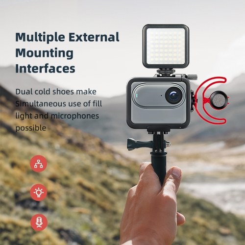 【Horizontal and Vertical Usage Mode】The camera cage can freely switch between horizontal and vertical usage mode with the two-prong mount. Dual cold shoes allow simultaneous use of fill light and microphones possible