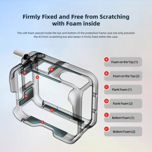【With Anti-scratching Foam Inside】The soft foam placed inside the top and bottom of the protective frame case not only prevents the GO 3S from scratching but also keeps it firmly fixed within the case.