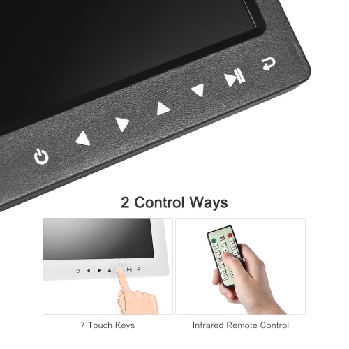 Can control the digital photo frame via the touch keys on the front or the included remote control, easy and convenient operation.